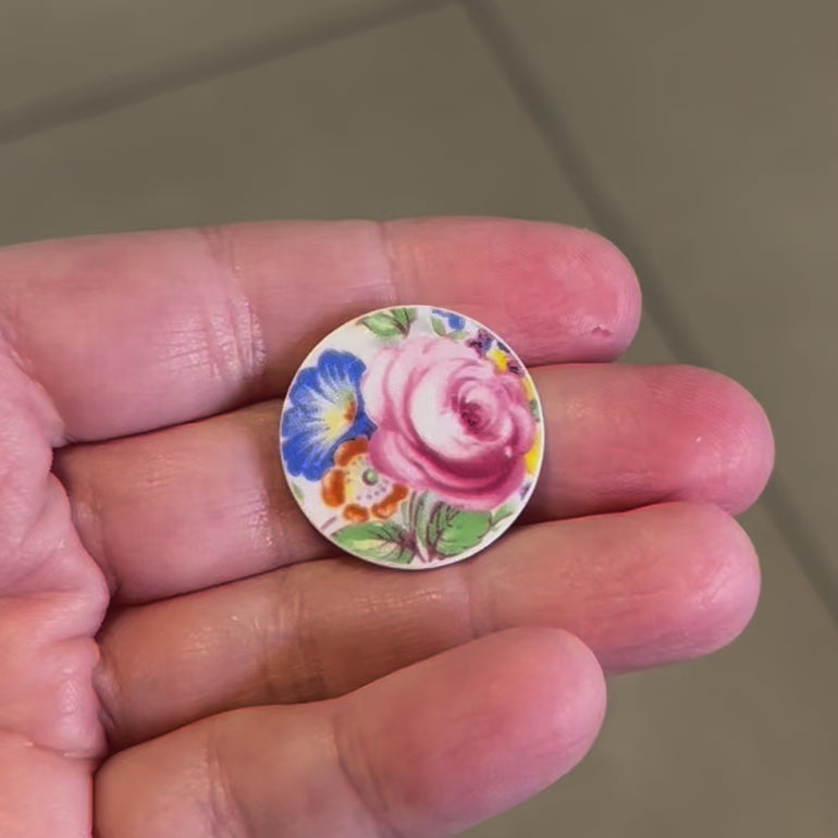 Crafted from high quality brass and a stunning piece of china that was rescued from a damaged Royal Albert ‘Albany Green’ saucer - Circa 1930’s. The brass handle itself is 28mm across with the plate piece being 25mm across.
