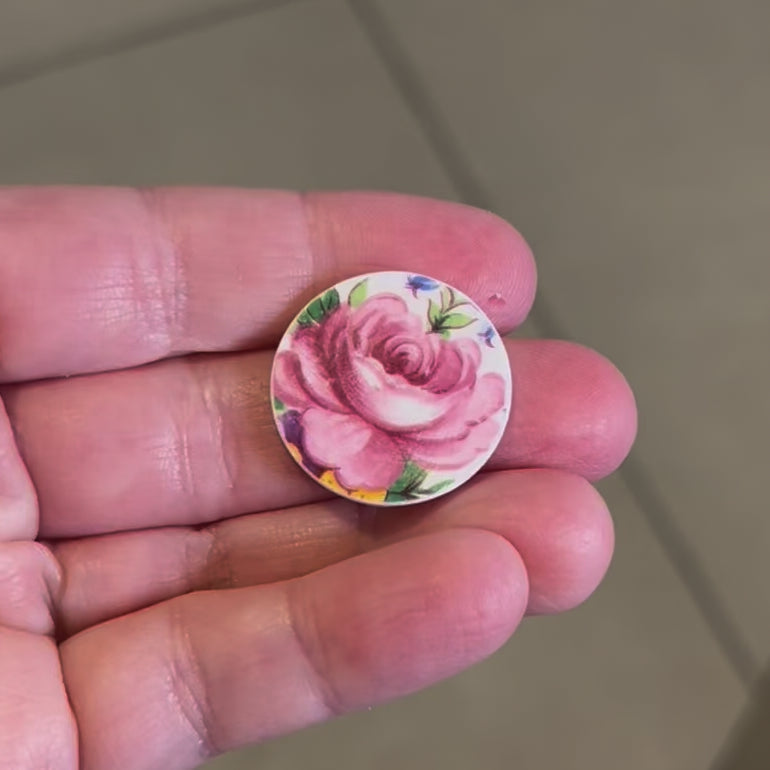 Crafted from high quality brass and a stunning piece of china that was rescued from a damaged Royal Albert ‘Enchantment’ saucer - Circa 1950-80’s. The brass handle itself is 28mm across with the plate piece being 25mm across.